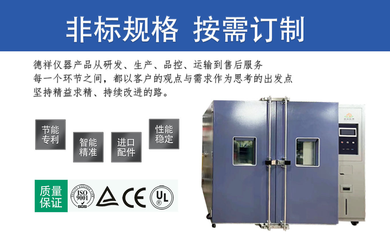 德祥仪器落地式恒温恒湿试验箱采用数控机床加工成型,造型美观大方,并采用平面无反作用把手,操作简便。箱体内部采用SUS304#不锈钢板,外部采用冷扎钢板静电喷涂工艺,以增加外观质感及洁净度。箱体保温层采用高强度聚氨酯发泡与高密度玻璃纤维棉,可避免不必要的能量损失。采用 PID+PWM 原理的 VRF(制冷剂流量控制)技术实现低温节能运行配备冷控制 PID 自动调节技术(在线性降温和低温恒温过程中,通过冷控制 PID 调节制冷输出量达到温度平衡,即制冷不制热、制热不制冷的“冷平衡”技术)。