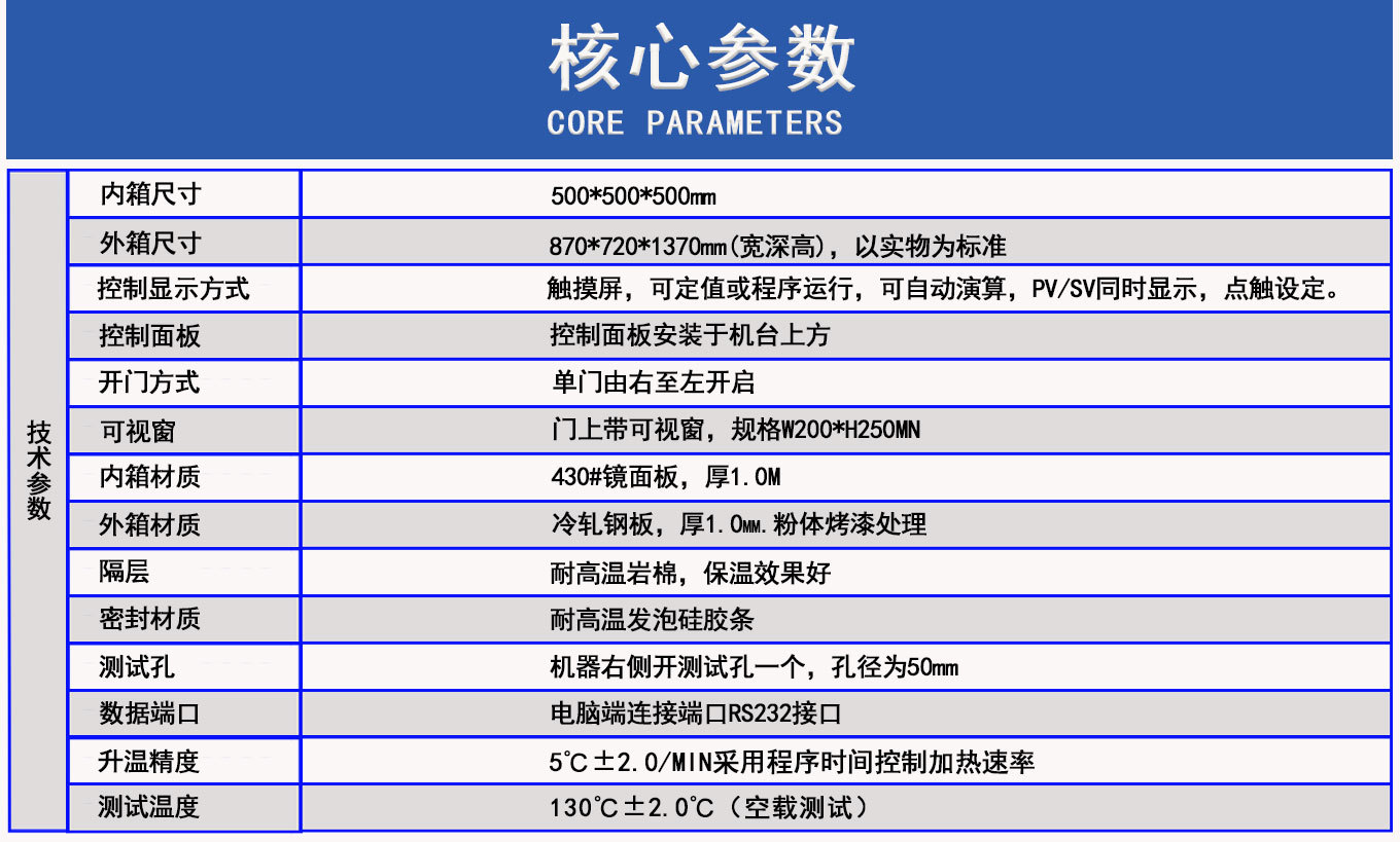 1、内尺寸: 500(宽)×600(深)×500(高)mm;